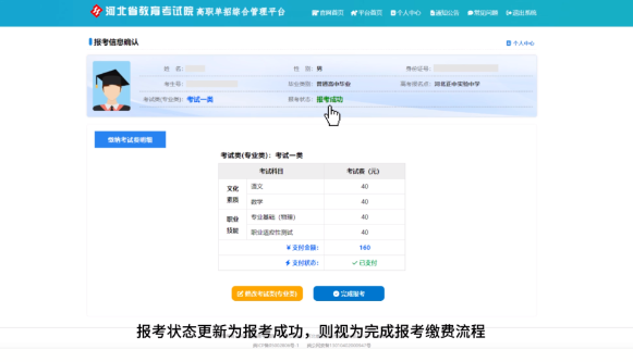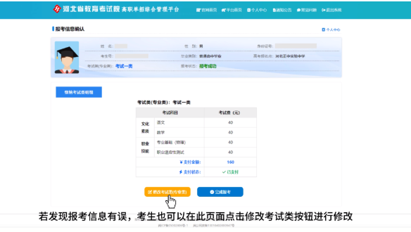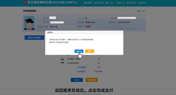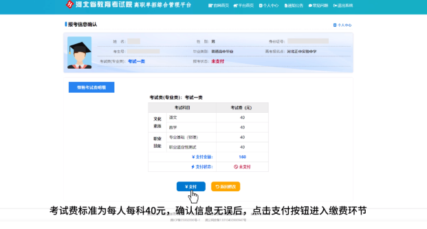 考試費標準為每人每科40元,確認信息無誤后,點擊支付按鈕進入繳費環節。